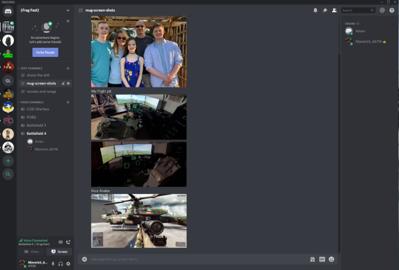 We have created a new Fragfest discord channel. This can be used to not only chat but we can type, voice and post pictures as well as share live games as well. If you want register at discord at https://discordapp.com/ download the "app" for windows not the browser version. Reply to this email with your name and discord number I can add you the squad discord. Mine is Maverick_667th#1538